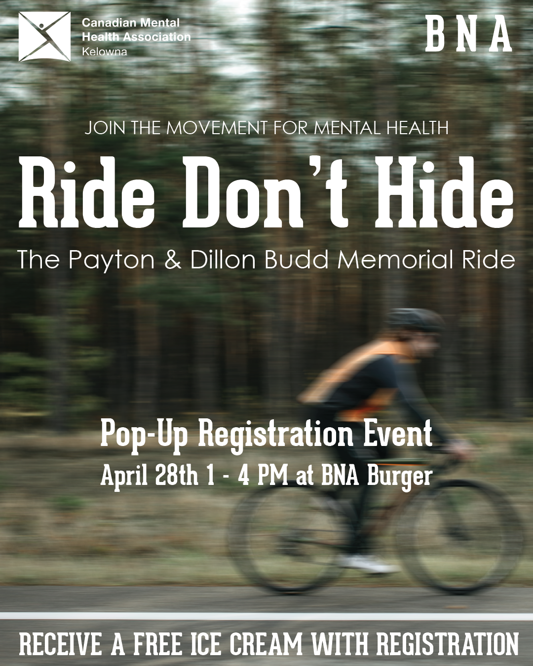 We are thrilled to participate in CMHA Kelowna’s Ride Don’t Hide event – The Payton & Dillon Budd Memorial Ride! This is a fantastic opportunity to support and rally for mental health alongside your community.